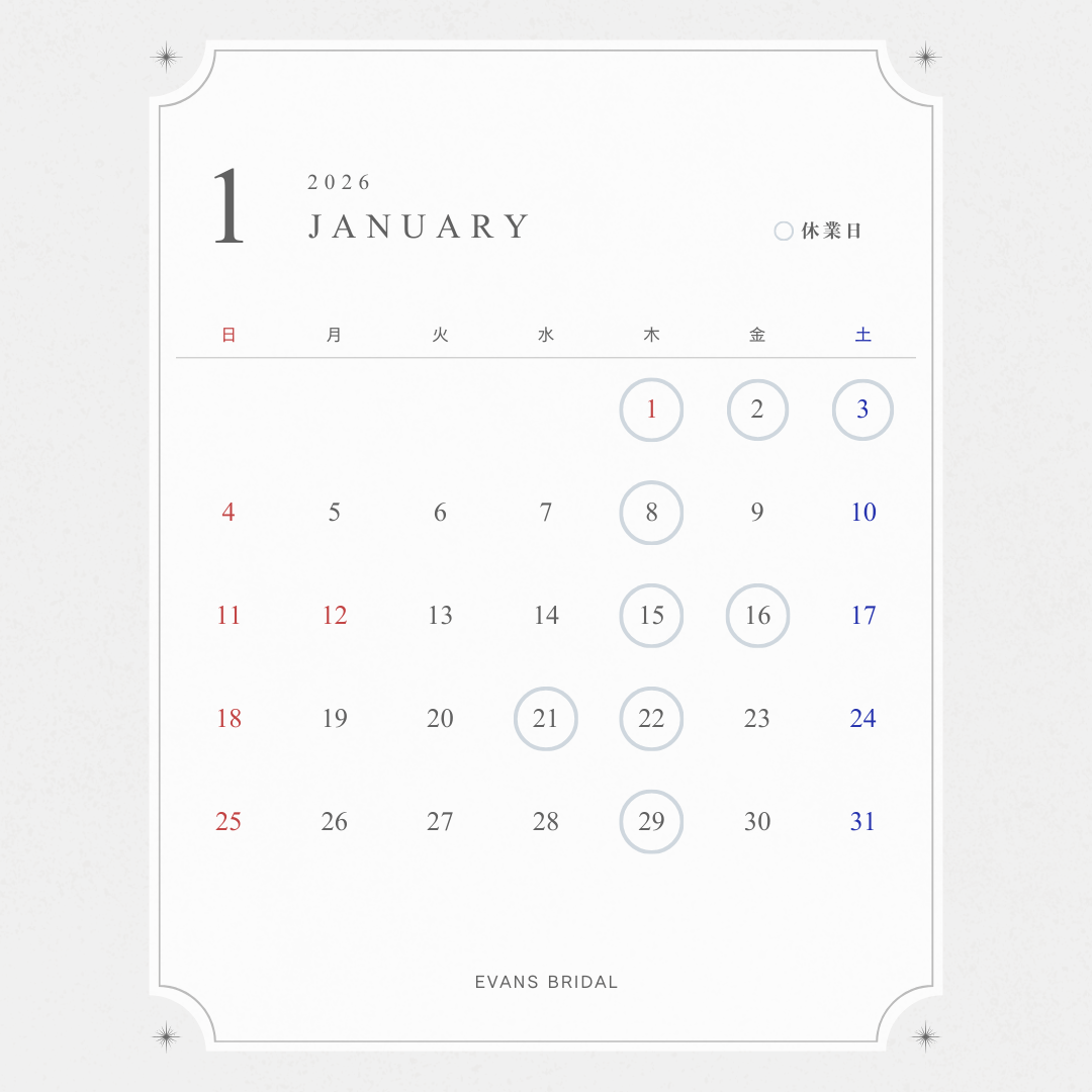 - 12/30(火)~1/3(土)の期間を休業いたします。